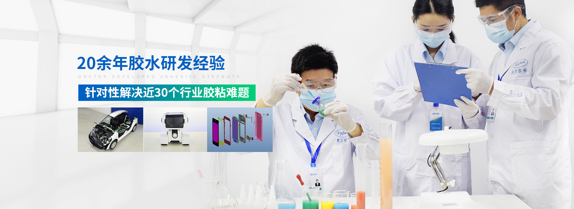 聚力擁有博士帶領的研發(fā)團隊在膠水等研發(fā)領域深耕20余年,與國家級重點實驗室、華南理工大學、武漢理工大學、浙江大學等學校合作, 榮獲多項發(fā)明專利,掌握600多款膠粘劑配方,可針對性解決膠粘難題,提供全面膠粘解決方案。